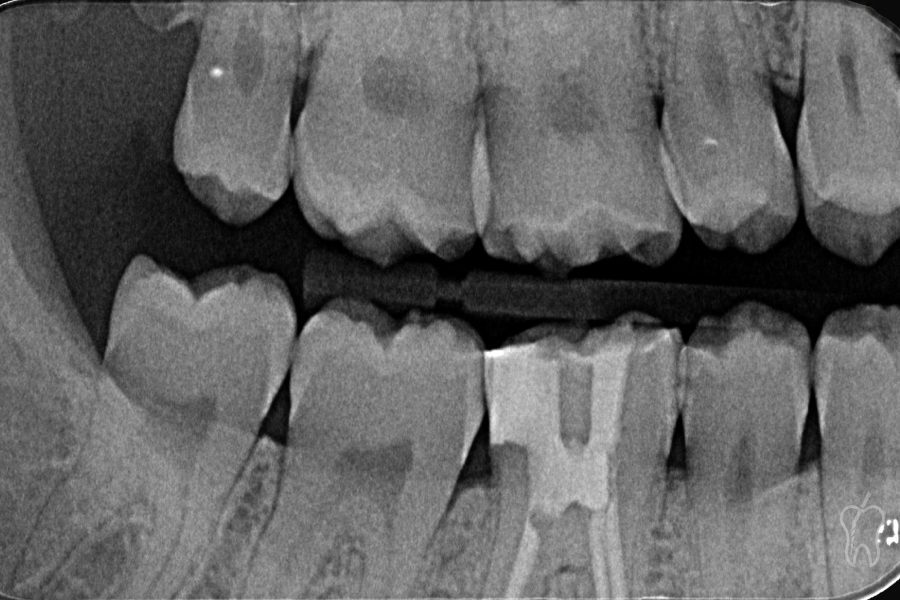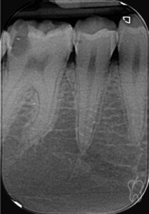 - Percusión ligeramente positiva, sin signos de periodontitis apical en la imagen inicial.
